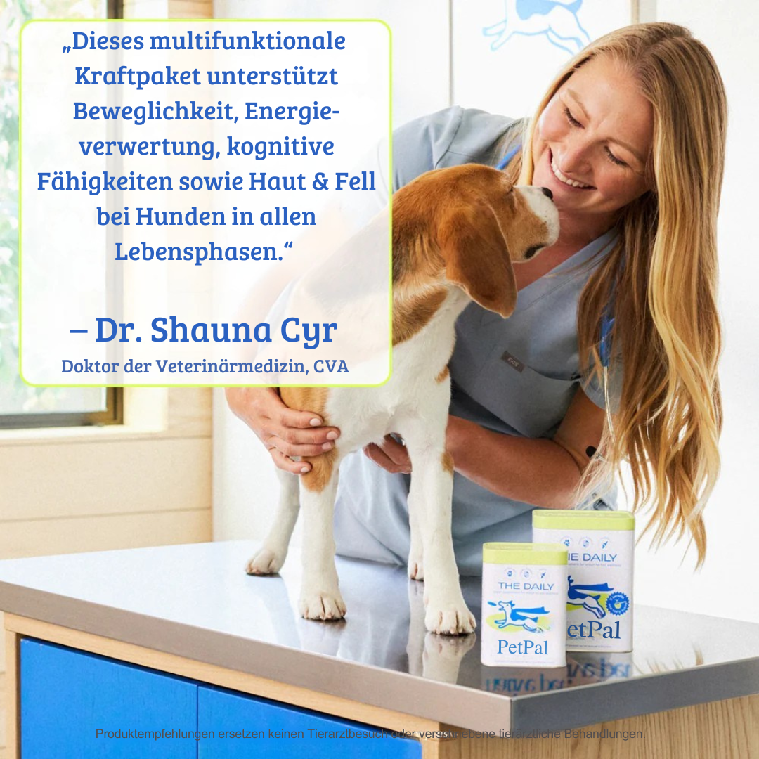 PetPal ist ein 11-in-1 Super-Supplement, das alle wichtigen Bereiche der Hundegesundheit abdeckt – von einem starken Immunsystem über gesunde Gelenke bis hin zu glänzendem Fell und einem vitalen Verdauungssystem.